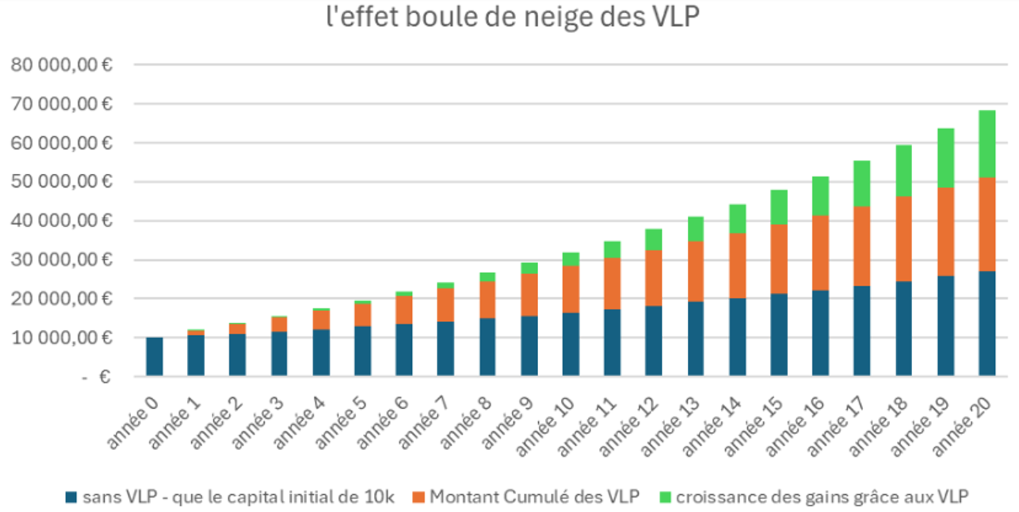 Un exemple concret : l’effet boule de neige sur 20 ans